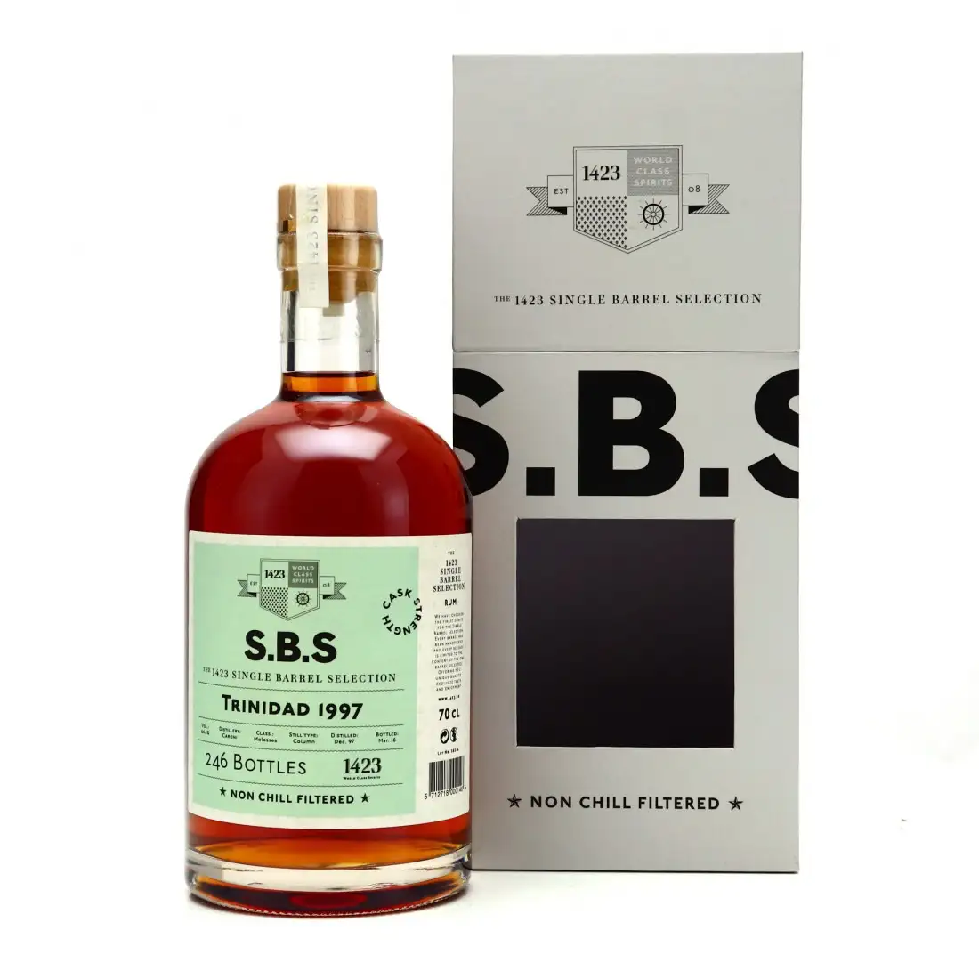 Die typische ’97 Caroni Nase: Petroleum, rauchendes Gummi, Benzin, Tabak und auch Orangenzesten. Im Mund dann zu Beginn eine kurze angenehme Süße, die schnell in Würzigkeit und auch leichte Bitterkeit umschwenkt. Auch Trockenfrüchte wie Daddeln oder Pflaumen sind für mich auszumachen. Der Abgang ist geprägt von den Aromen aus der Nase und vielleicht auch ein wenig Bitterschokolade. Als Vergleichskandidat habe ich den A.D. Rattray Caroni 17yo in CS rangeholt (für mich der Referenz Caroni aus 1997). Der SBS ist definitiv ein guter Rum, kommt aber leider für mich nicht an der ADR ran – weder in der Nase noch am Gaumen. Er ist nicht ganz so komplex und schwer wie der ADR und für mich auch etwas „columniger“, wenn man das sagen so sagen kann ;-). Nichtsdestotrotz defintiv ein sehr guter Rum. 86 Punkte