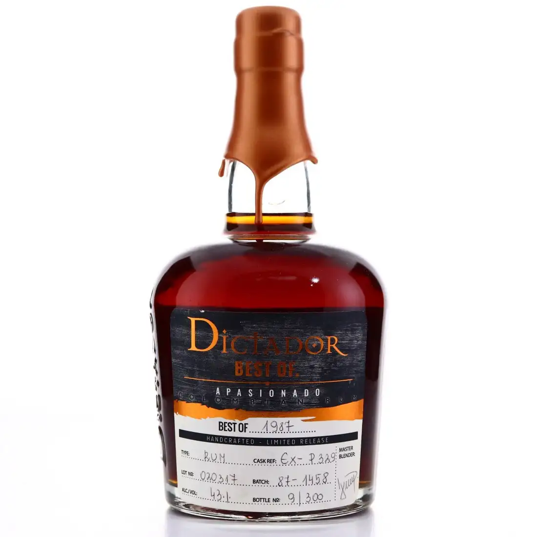Ich probiere gerade ein paar weitere Samples aus meiner großen Box mit Dictador-Rums. Während ich mir den neuen Tron "Ares" auf Bluray anschaue. Das ist eine ziemlich durchschnittliche Abfüllung, und sie sind alle eher süß. Ich denke, das größte Problem ist, dass sie nicht lagern sollten, denn das würde sie nur flacher und süßer machen. Die Nase ist kräftig mit Karamell, Trockenfrüchten, Vanille, Pflaume, Schokolade und leichtem Kaffee. Der Gaumen ist ölig und süß mit Trockenfrüchten, Vanille, Pflaumen, Kaffee, leichten Nussnoten und Leder. Der Abgang ist lang, ölig und süß mit geröstetem Holz, erdigen Noten, Pflaumen und leichter Orange.